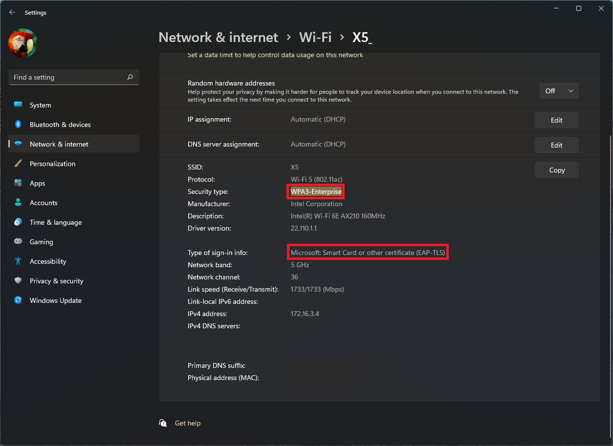 연결이 완료 후 설정 및 WLC을 통해 확인해보면 WPA3-Enterprise로 정상적으로 연결되었음을 확인할 수 있음